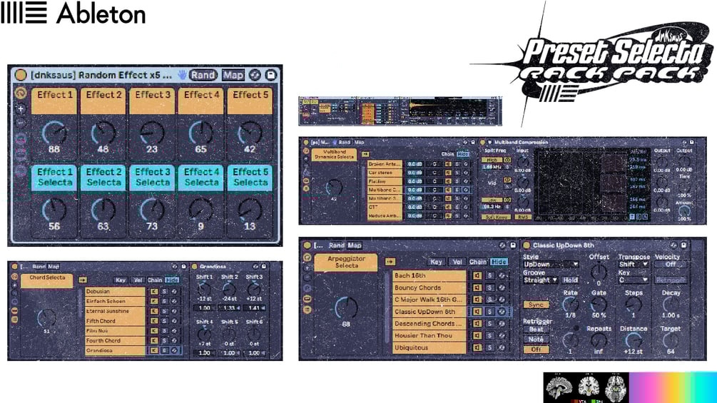 Randomizable Preset Selector Racks for MOST Ableton devices including MIDI devices and ones for Suite Edition. Includes Racks that pick any random preset of effects included in each rack.